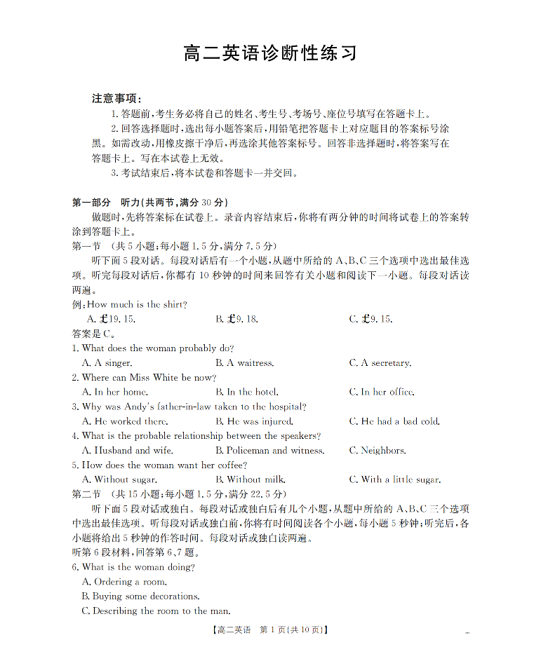 山东省济宁市2025-2026学年高二上学期1月诊断性练习 英语.pdf