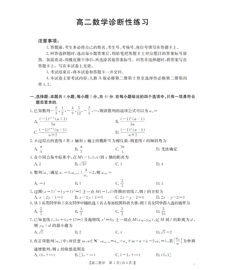 山东省济宁市2025-2026学年高二上学期1月诊断性练习 数学.pdf