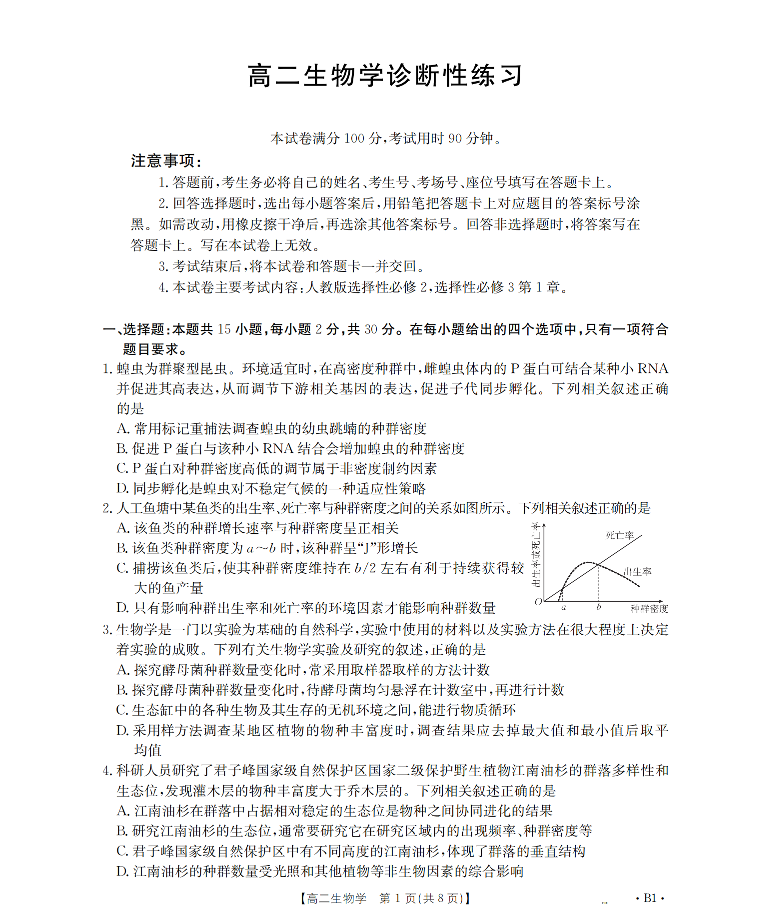 山东省济宁市2025-2026学年高二上学期1月诊断性练习 生物.pdf