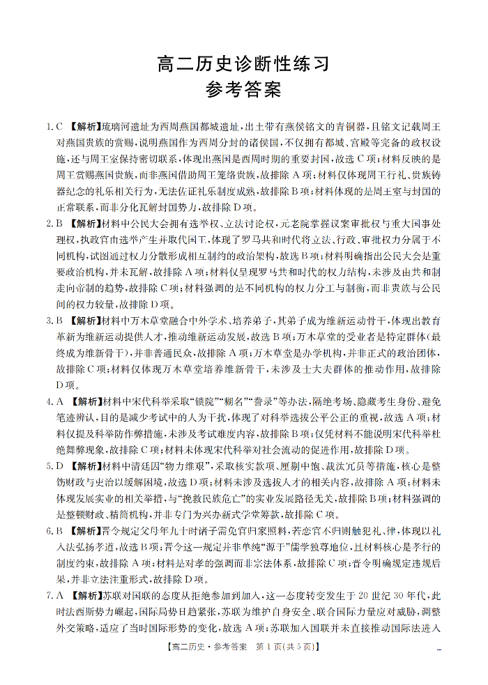 山东省济宁市2025-2026学年高二上学期1月诊断性练习 历史答案.pdf