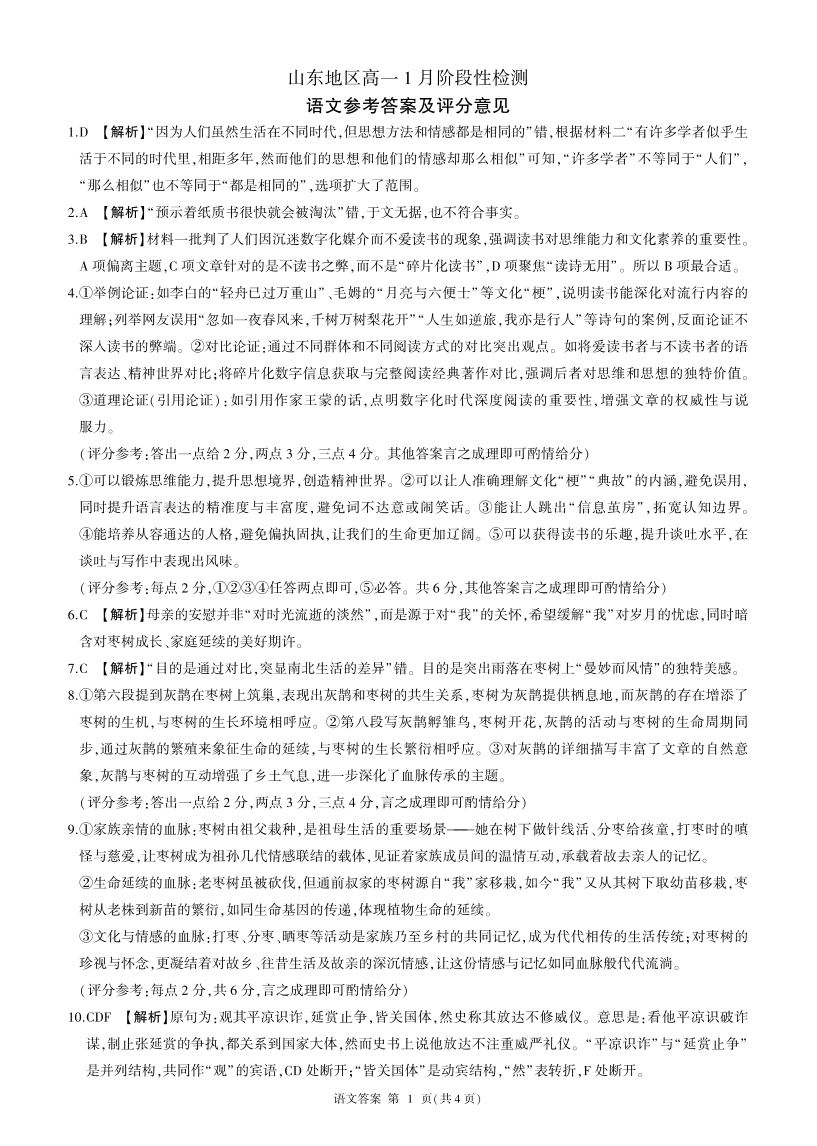 山东省济南市名校联考2025-2026学年高一上学期1月阶段性检测 语文答案.pdf