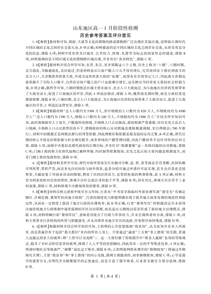 山东省济南市名校联考2025-2026学年高一上学期1月阶段性检测 历史答案.pdf