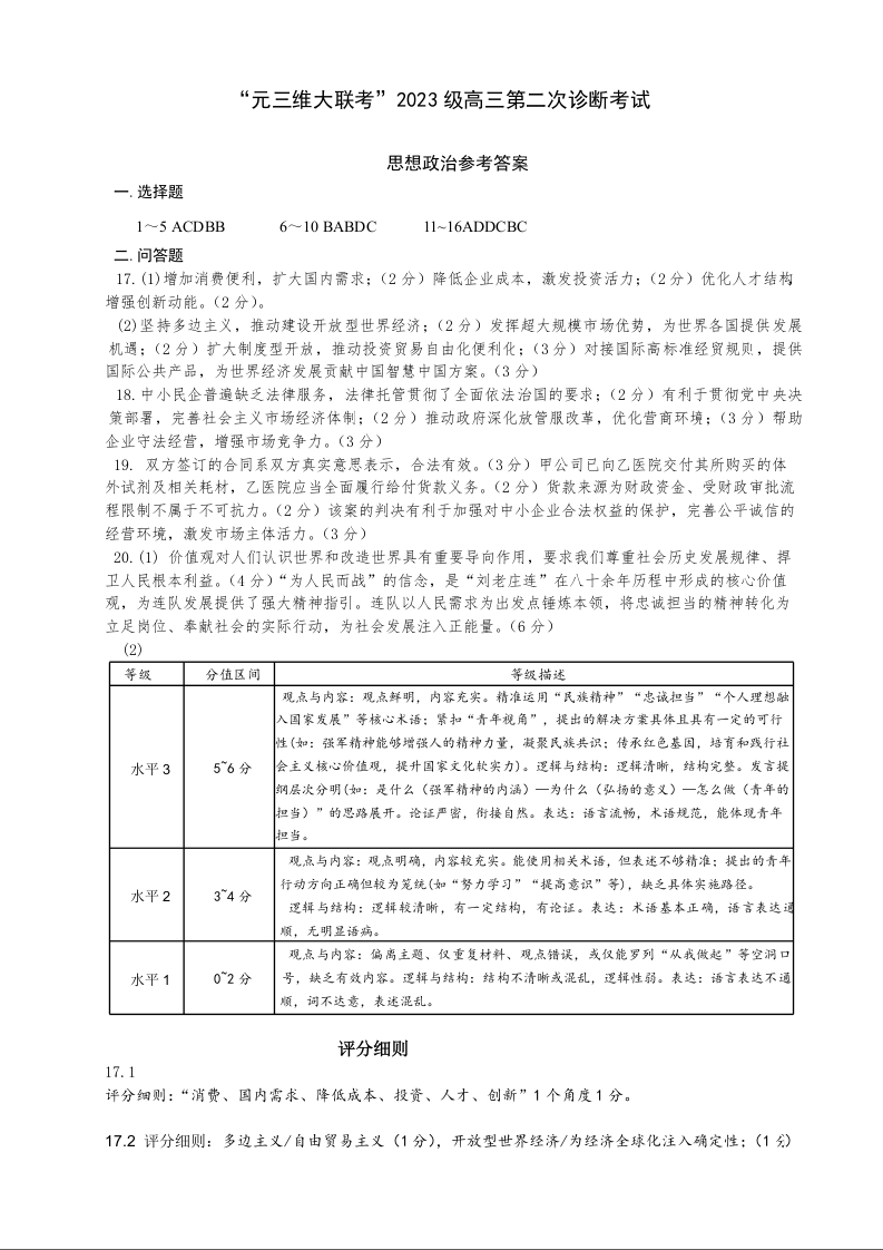 “元三维大联考”2023级高三第二次诊断考试 政治答案.docx