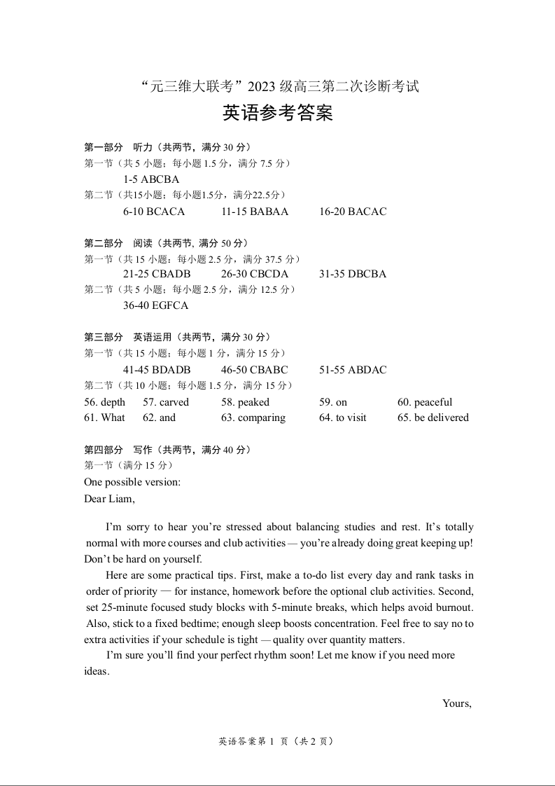 “元三维大联考”2023级高三第二次诊断考试 英语答案.docx