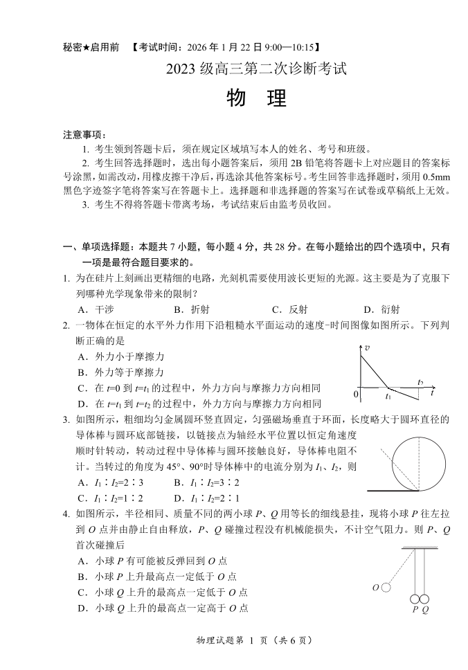 “元三维大联考”2023级高三第二次诊断考试 物理.pdf