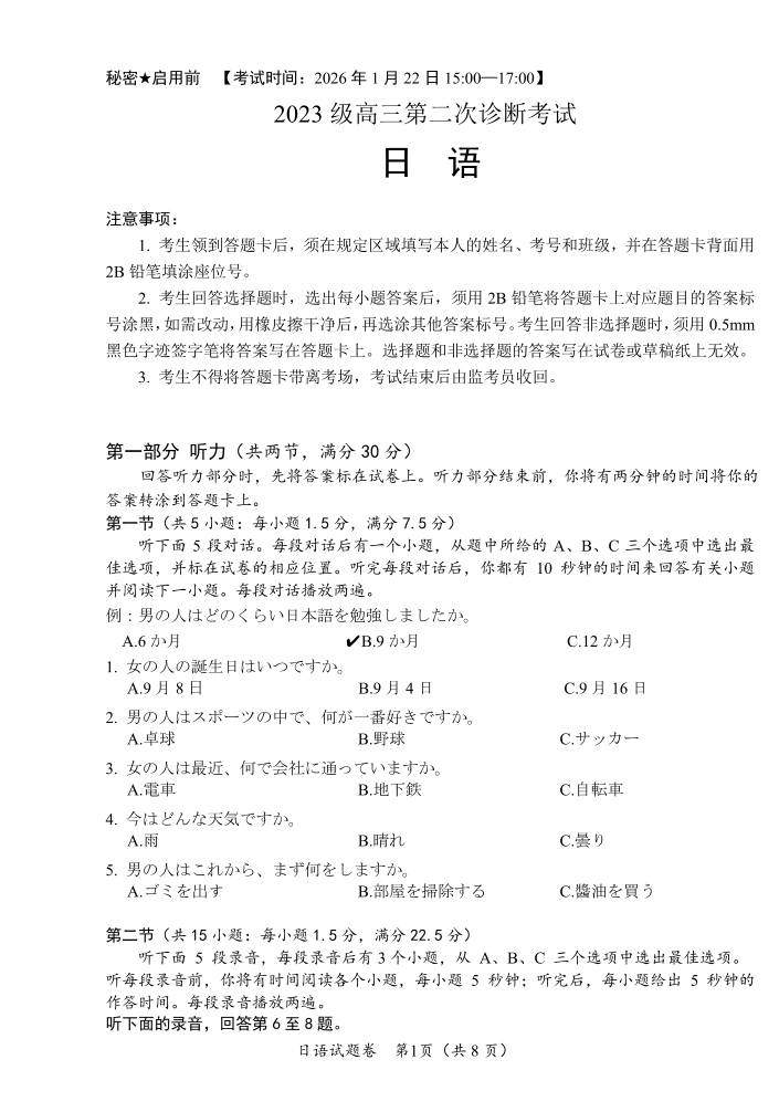 “元三维大联考”2023级高三第二次诊断考试 日语.pdf