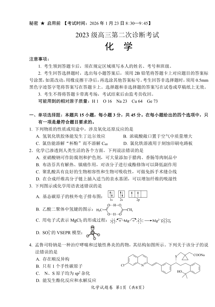 “元三维大联考”2023级高三第二次诊断考试 化学.pdf