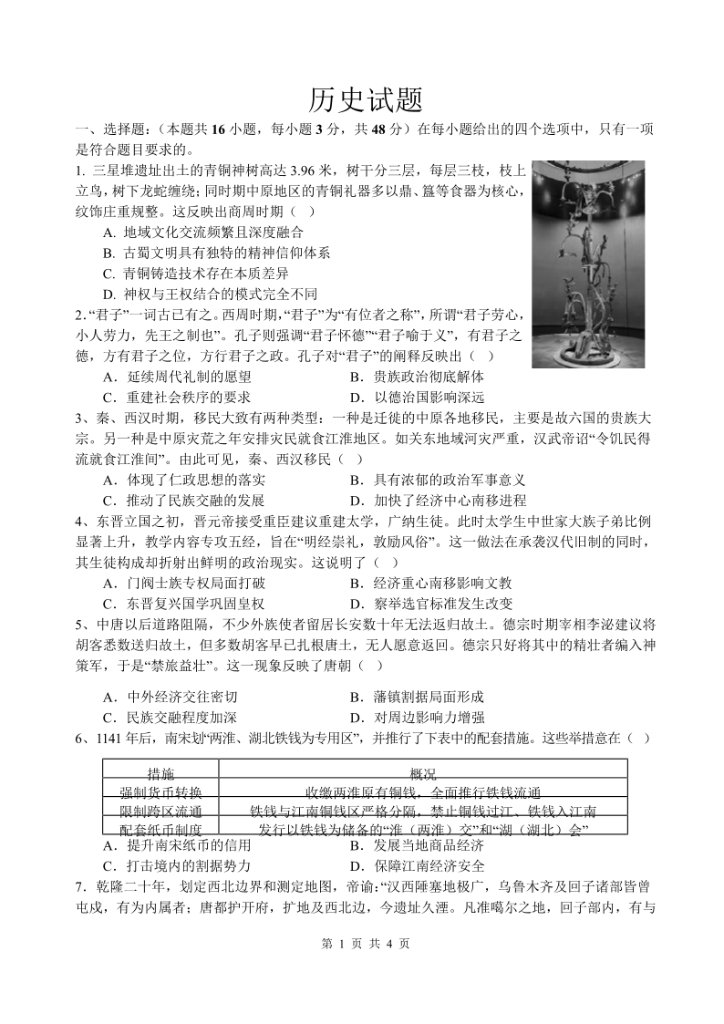 四川省绵阳中学2026届高三第二次模拟考试 历史.pdf