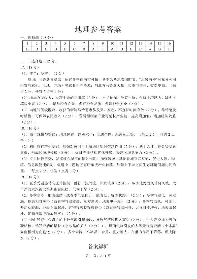四川省绵阳中学2026届高三第二次模拟考试 地理答案.pdf