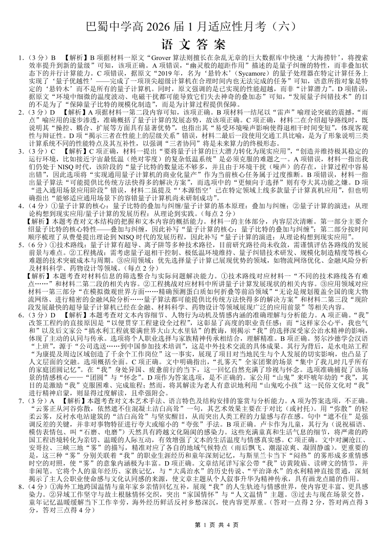 重庆市巴蜀中学2026届高考适应性月考卷(六)语文答案.pdf