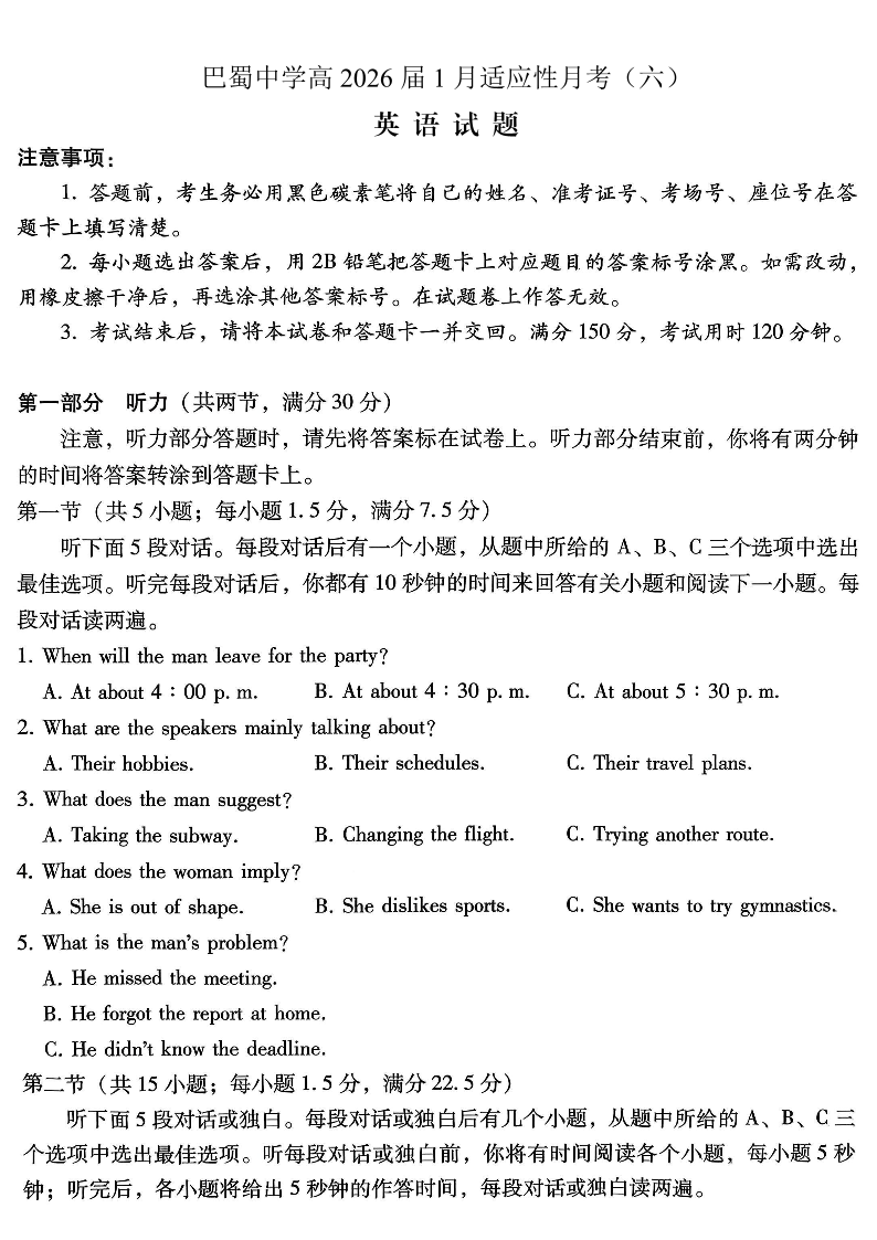 重庆市巴蜀中学2026届高考适应性月考卷(六)英语.pdf