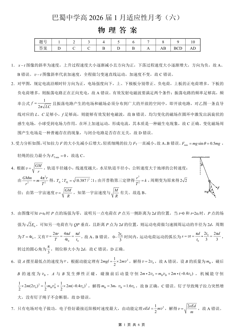 重庆市巴蜀中学2026届高考适应性月考卷(六)物理答案.pdf