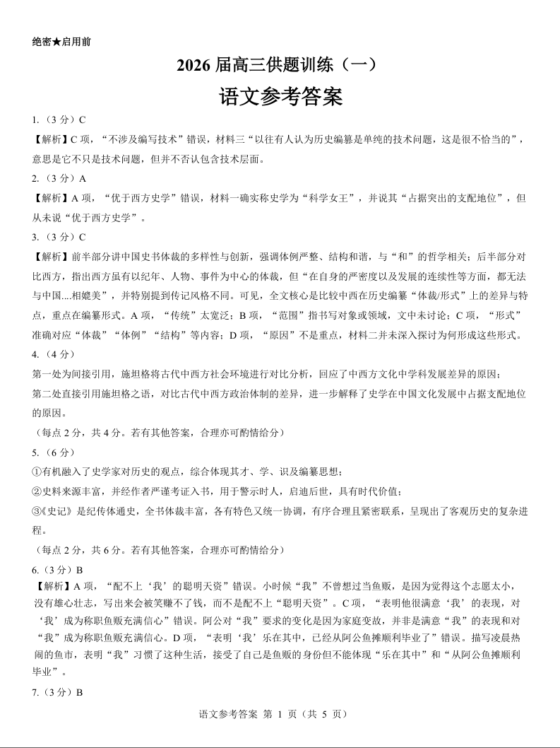 内蒙古2026届高三供题训练(一)语文参考答案.docx