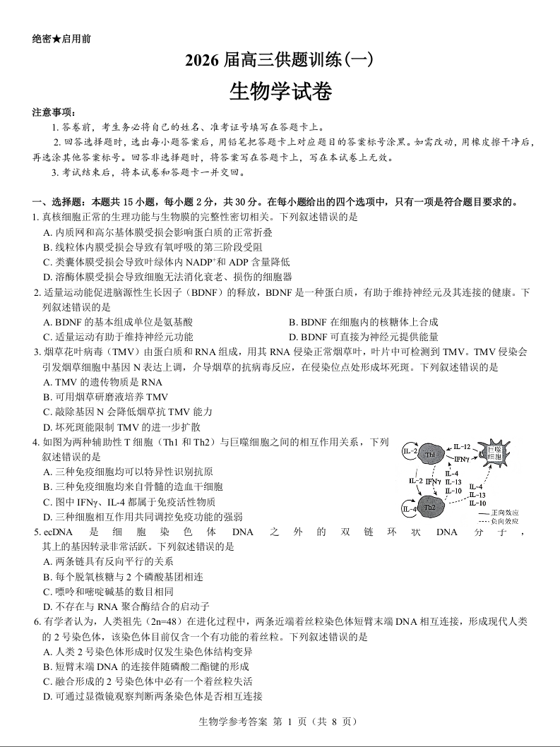 辽宁省2026届高三供题训练(一)生物试题.docx