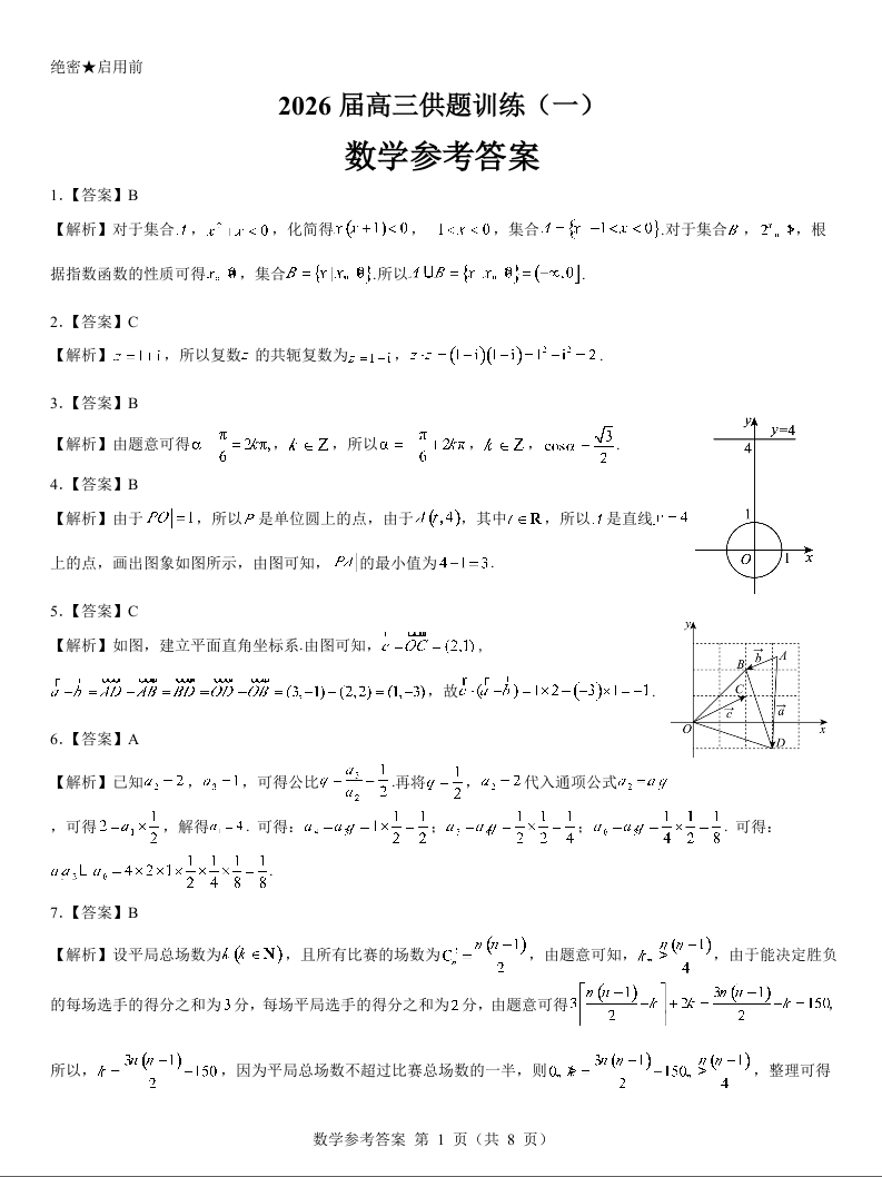辽宁省2026届高三供题训练(一)数学参考答案.docx