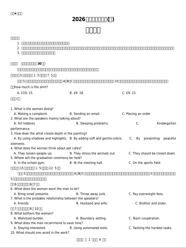 河南省2026届高三供题训练(一)英语试题.docx