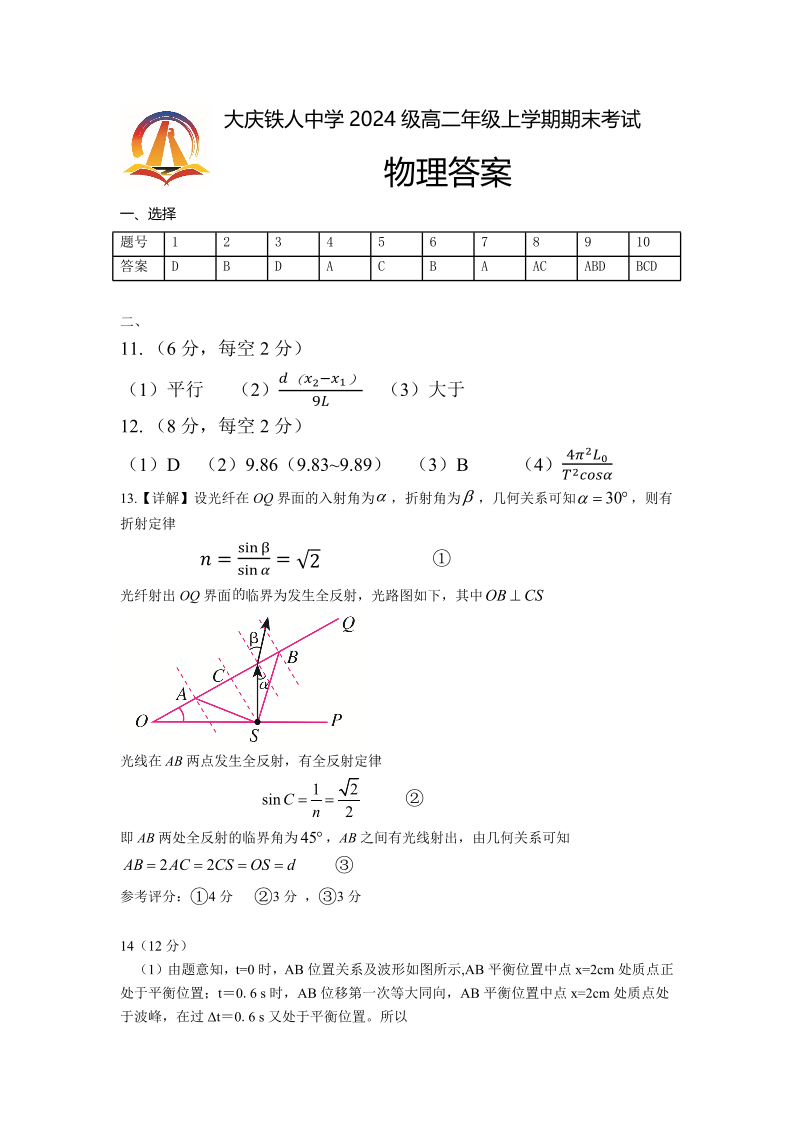 大庆铁人中学2024级高二年级上学期期末考试 物理答案.pdf
