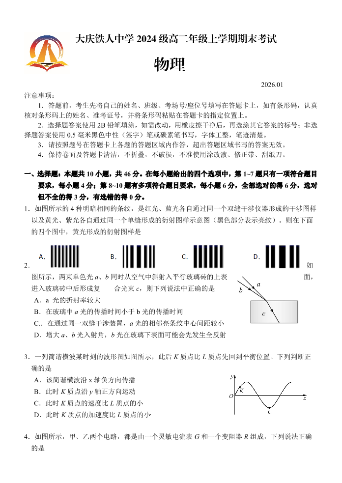 大庆铁人中学2024级高二年级上学期期末考试 物理.pdf