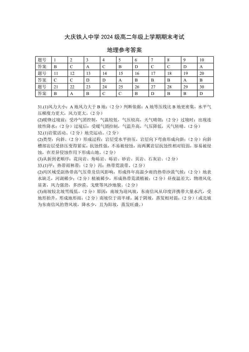 大庆铁人中学2024级高二年级上学期期末考试 地理答案.pdf