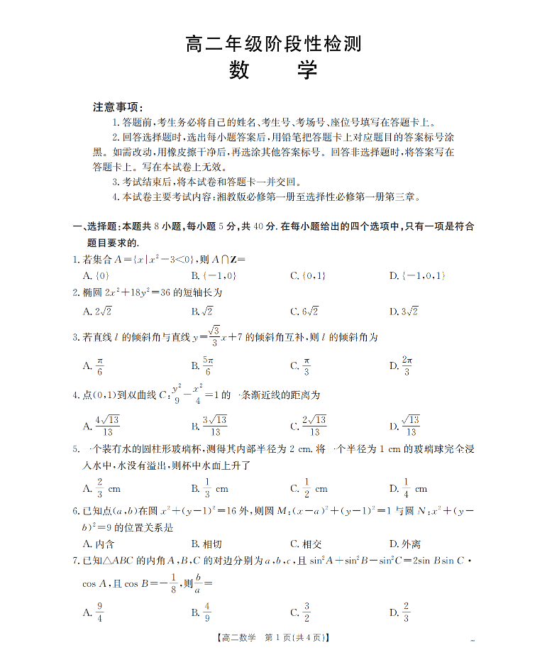 甘肃省陇南地区2025-2026学年高二上学期阶段性检测 数学.pdf