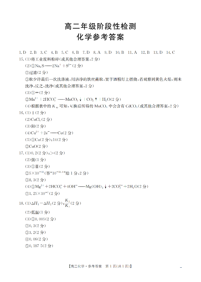 甘肃省陇南地区2025-2026学年高二上学期阶段性检测 化学答案.pdf