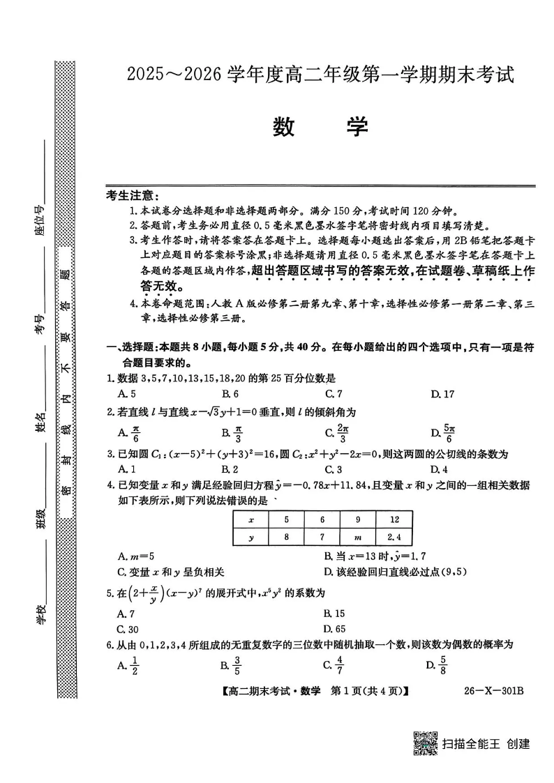 黑龙江省龙东十校联盟2025-2026学年高二上学期期末考试 数学试题(含答案).pdf