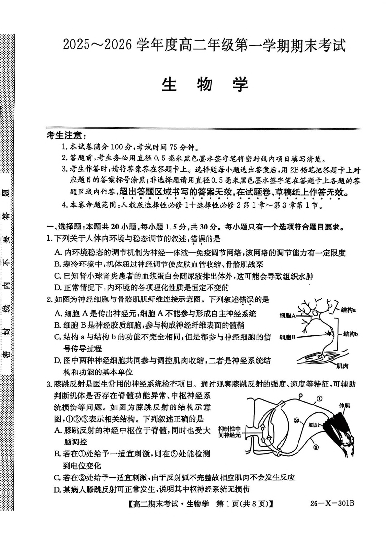 黑龙江省龙东十校联盟2025-2026学年高二上学期期末考试 生物试题(含答案).pdf