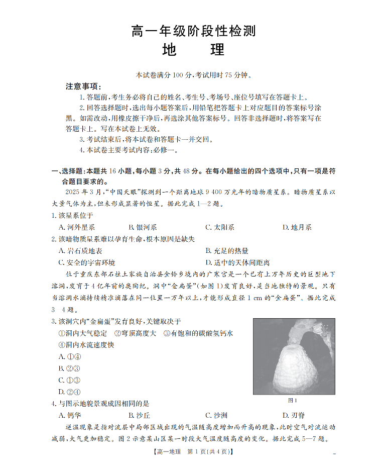 甘肃省陇南地区2025-2026学年高一上学期阶段性检测 地理.pdf