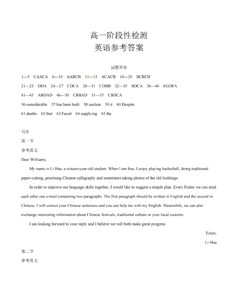 甘肃省天水市2025-2026学年高一上学期1月月考阶段性检测 英语答案.pdf