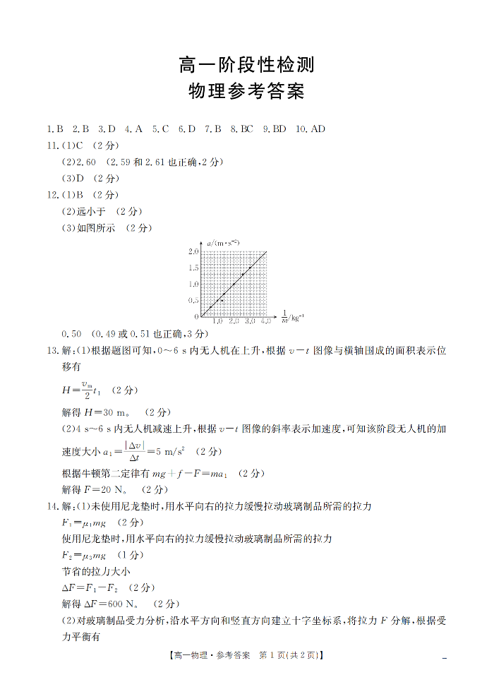 甘肃省天水市2025-2026学年高一上学期1月月考阶段性检测 物理答案.pdf