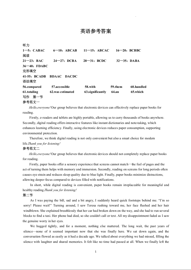 五市十校协作体2025-2026学年高三上学期1月期末阶段性作业 英语答案.docx