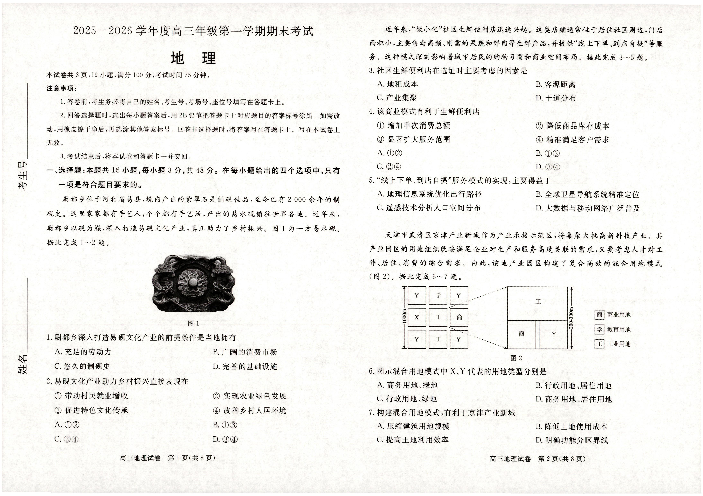 唐山市2025-2026学年度高三年级第一学期期末考试 地理.pdf