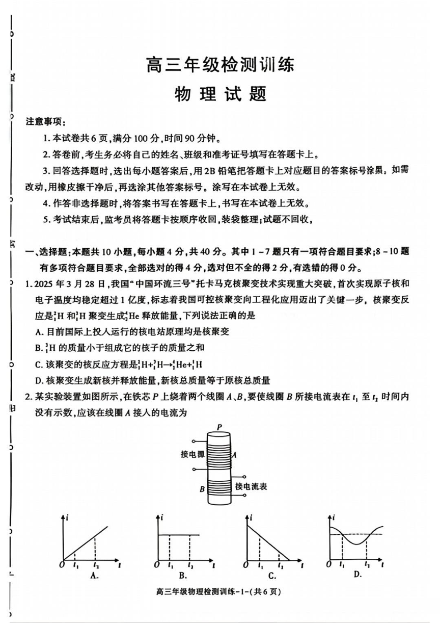 陕西省榆林市2026届高三年级检测训练 物理.pdf