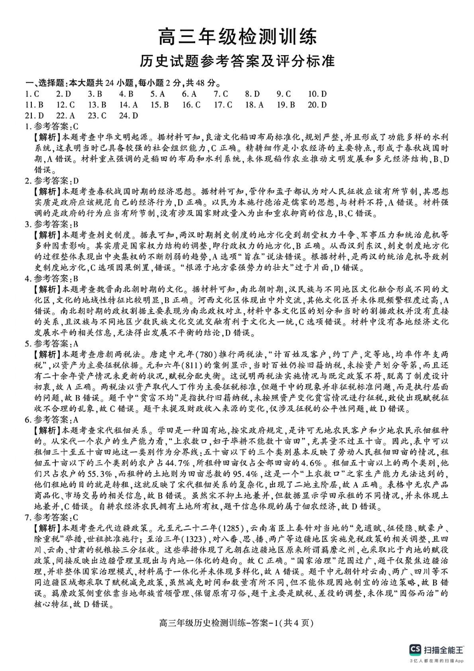 陕西省榆林市2026届高三年级检测训练 历史答案.pdf