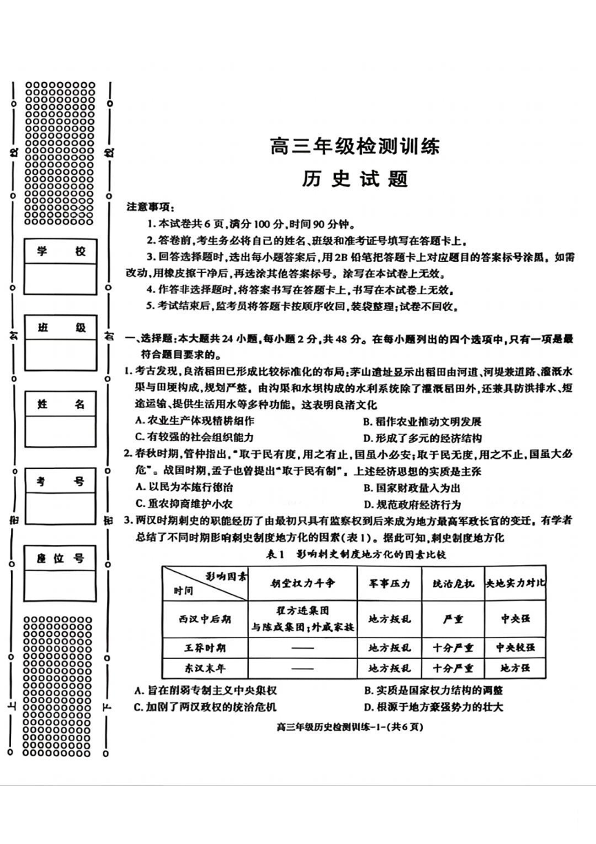 陕西省榆林市2026届高三年级检测训练 历史.pdf