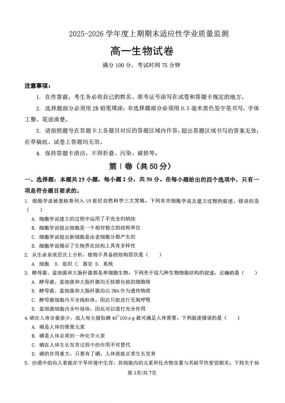 成都市第七中学2025-2026学年度上期高2028届高一期末考试 生物.pdf