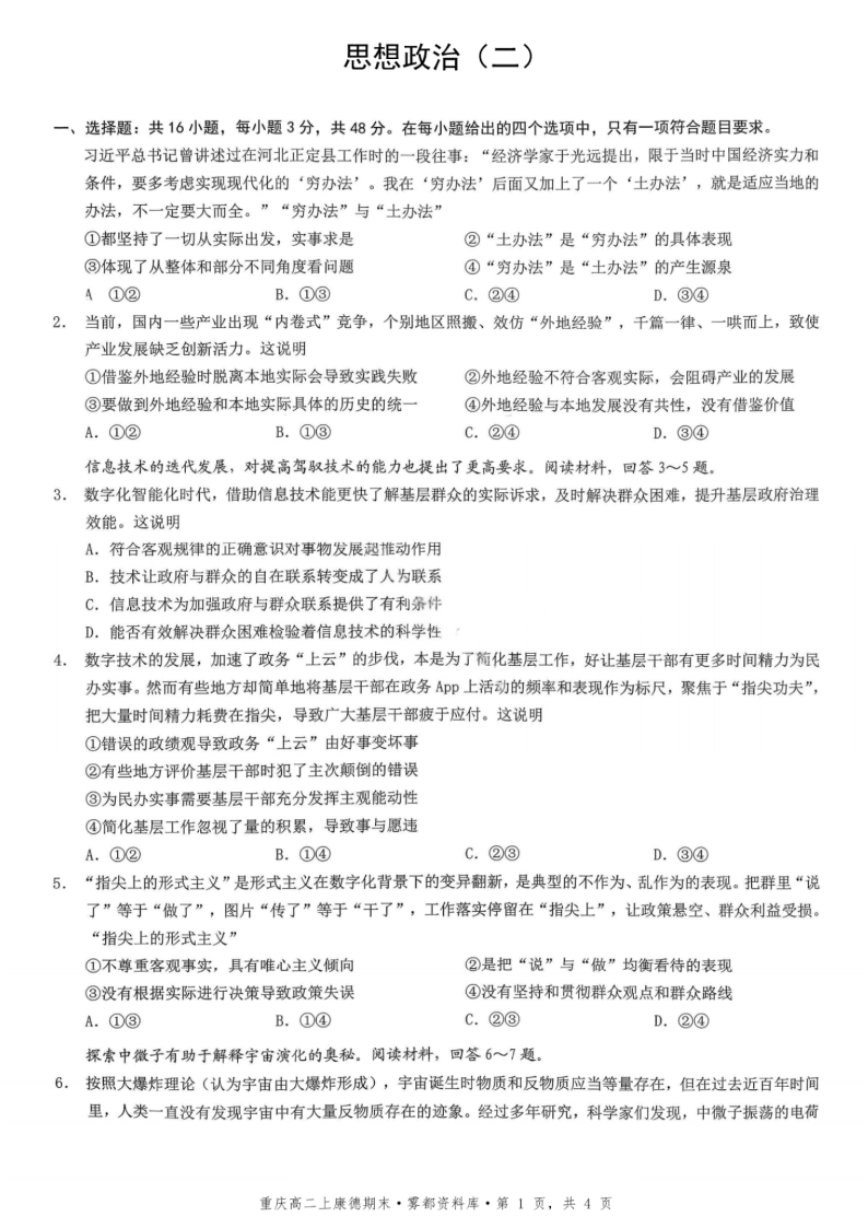 重庆市康德教育·2027届重庆市高二上学期1月期末考试 政治.pdf