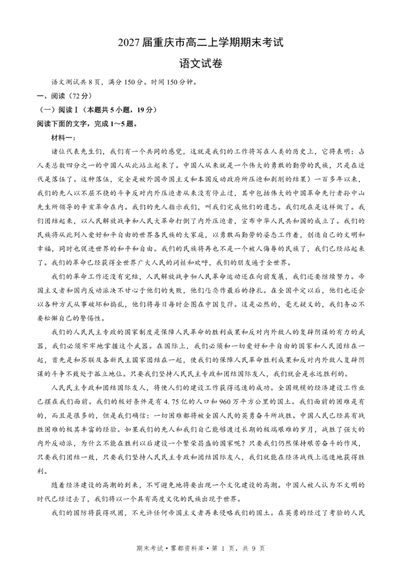重庆市康德教育·2027届重庆市高二上学期1月期末考试 语文.pdf