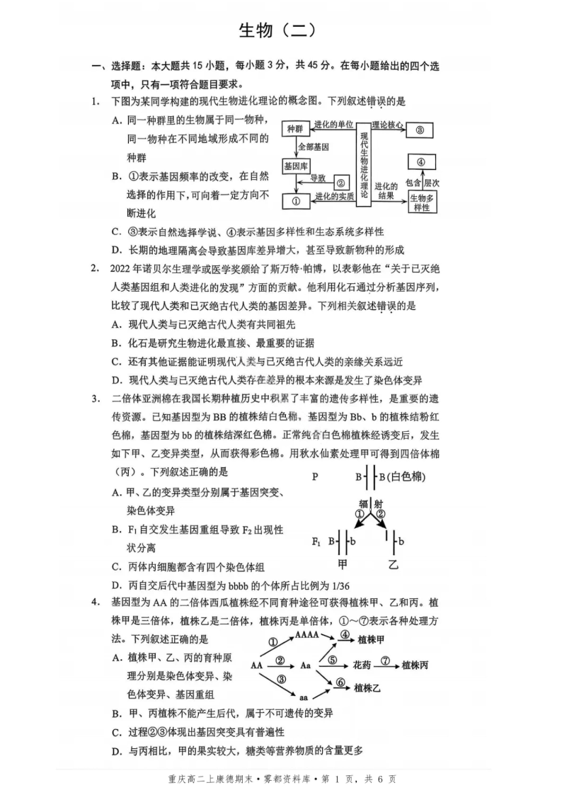 重庆市康德教育·2027届重庆市高二上学期1月期末考试 生物.pdf