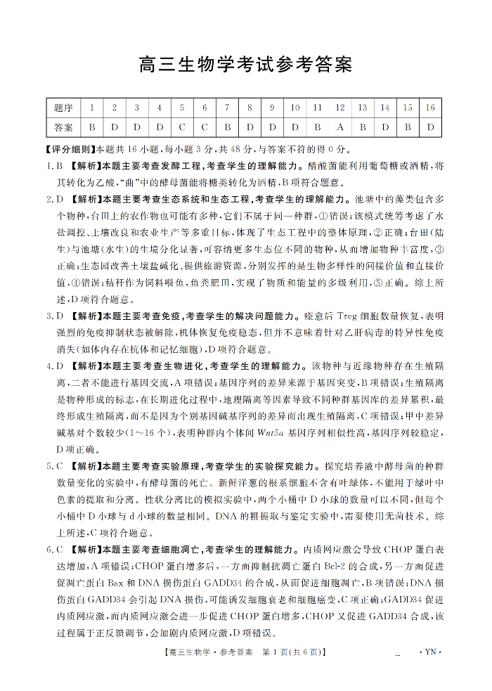 云南省2026届高三上学期1月百万大联考 生物答案.pdf