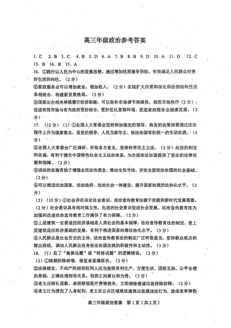 天津市和平区2025-2026学年高三上学期1月期末考试 政治答案.pdf