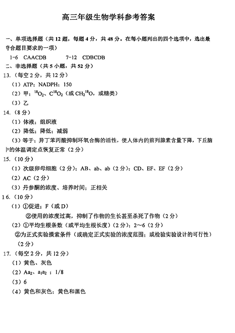 天津市和平区2025-2026学年高三上学期1月期末考试 生物答案.pdf