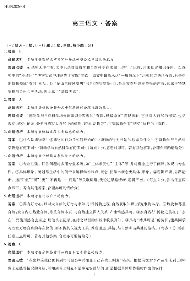 湖南省2025-2026学年高三上学期1月期末考试 语文详细答案.pdf