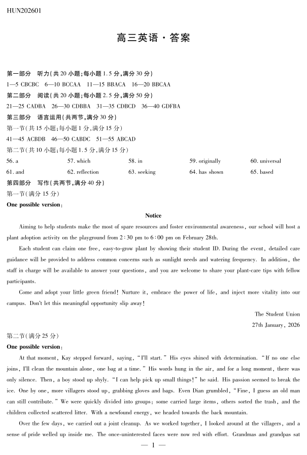 湖南省2025-2026学年高三上学期1月期末考试 英语详细答案.pdf
