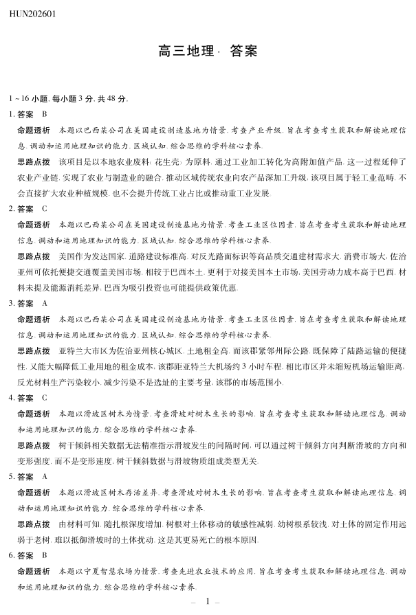 湖南省2025-2026学年高三上学期1月期末考试 地理详细答案.pdf