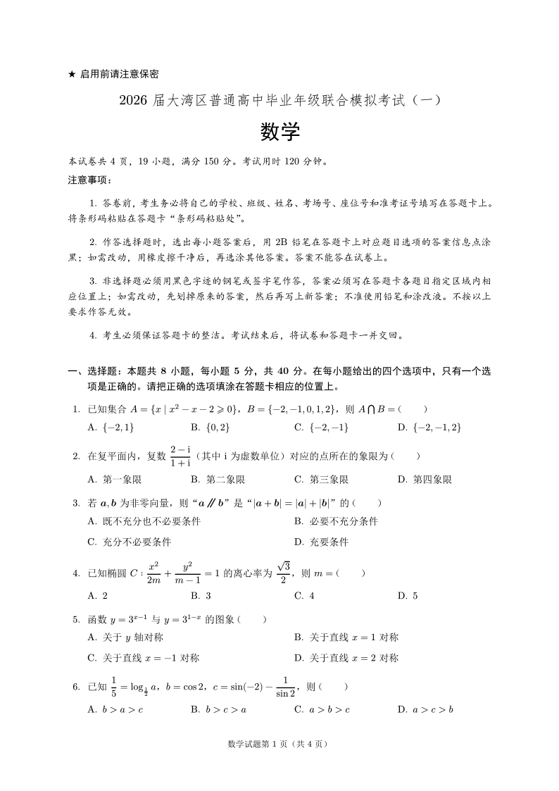 2026届大湾区普通高中毕业年级联合模拟考试(一)数学.pdf