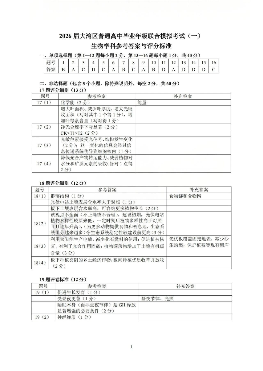 2026届大湾区普通高中毕业年级联合模拟考试(一)生物答案.pdf