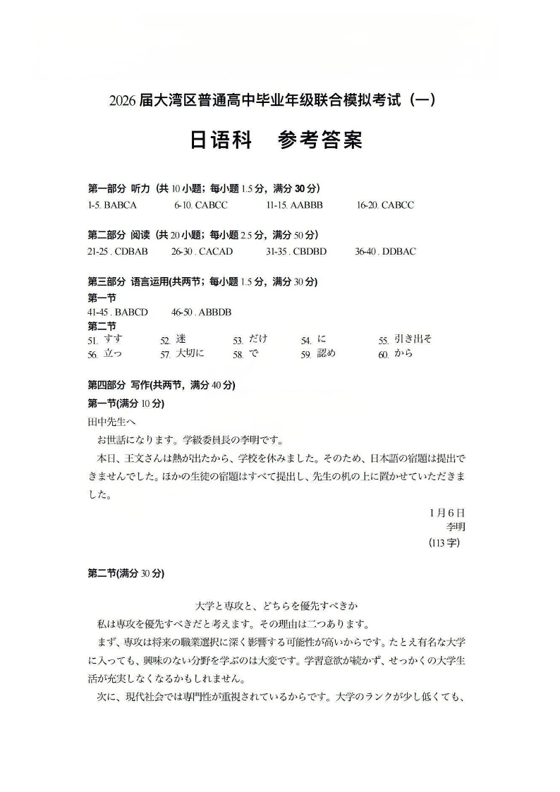 2026届大湾区普通高中毕业年级联合模拟考试(一)日语答案.pdf