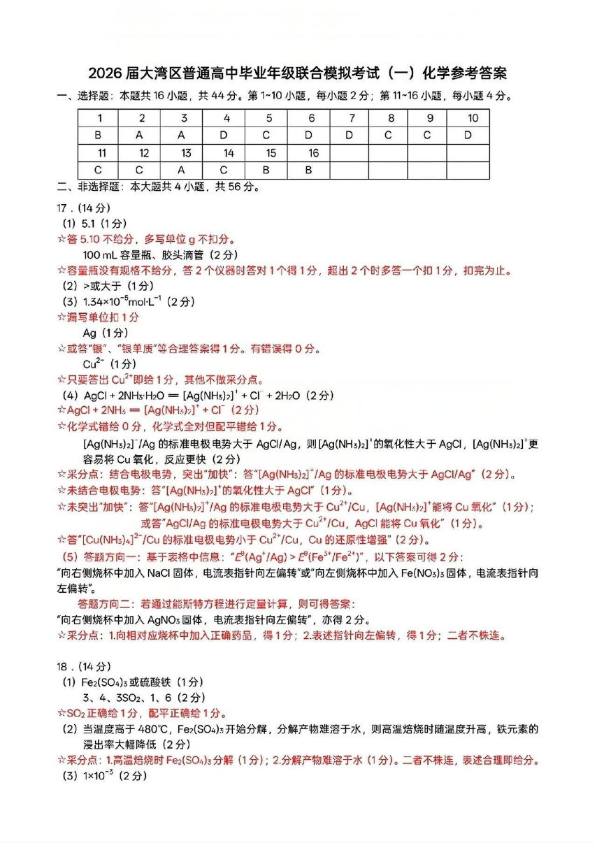 2026届大湾区普通高中毕业年级联合模拟考试(一)化学答案.pdf