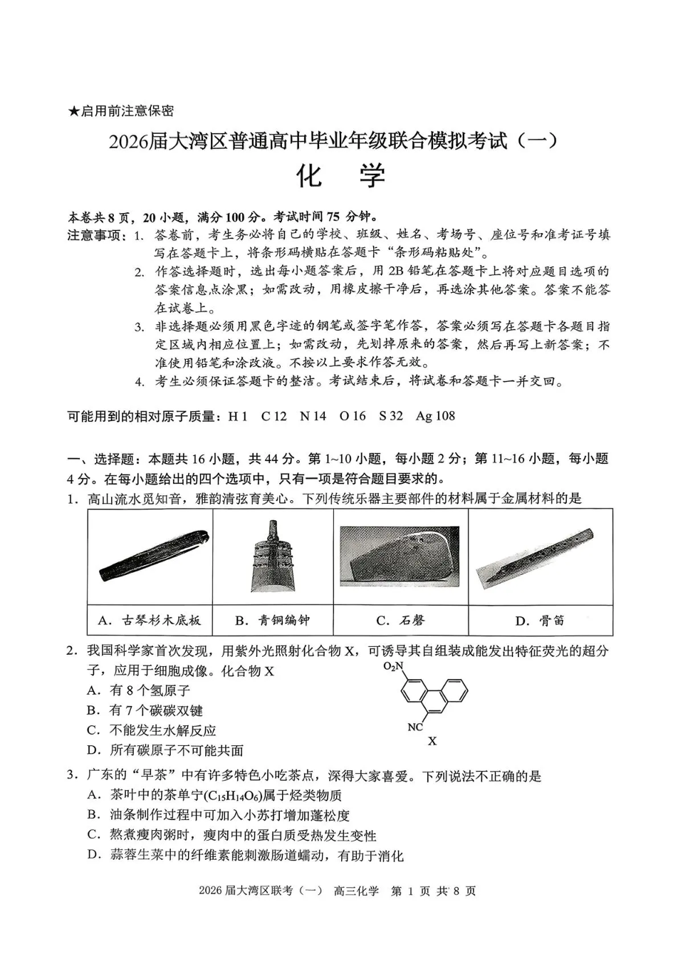 2026届大湾区普通高中毕业年级联合模拟考试(一)化学.pdf